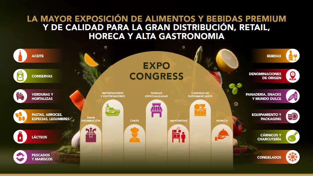 Presenta tus alimentos y bebidas premium a compradores, directivos y empresarios de distribución, retail, hostelería y alta gastronomía